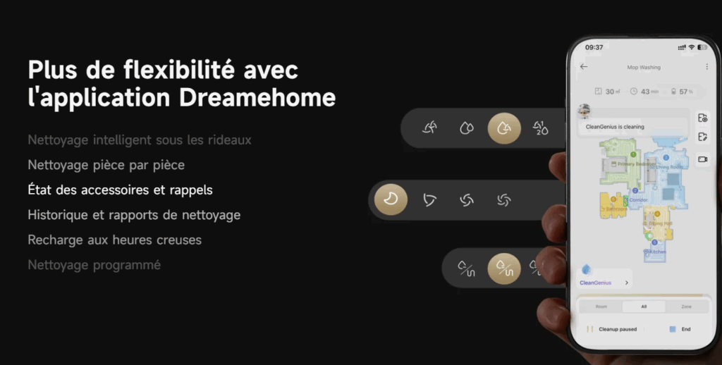 Un des dernier née, le Dreame L40s Pro Ultra Black, veut être ce compagnon domestique ultime qui aspire, lave, se vide, se nettoie et… vous fait presque oublier qu’il existe.
