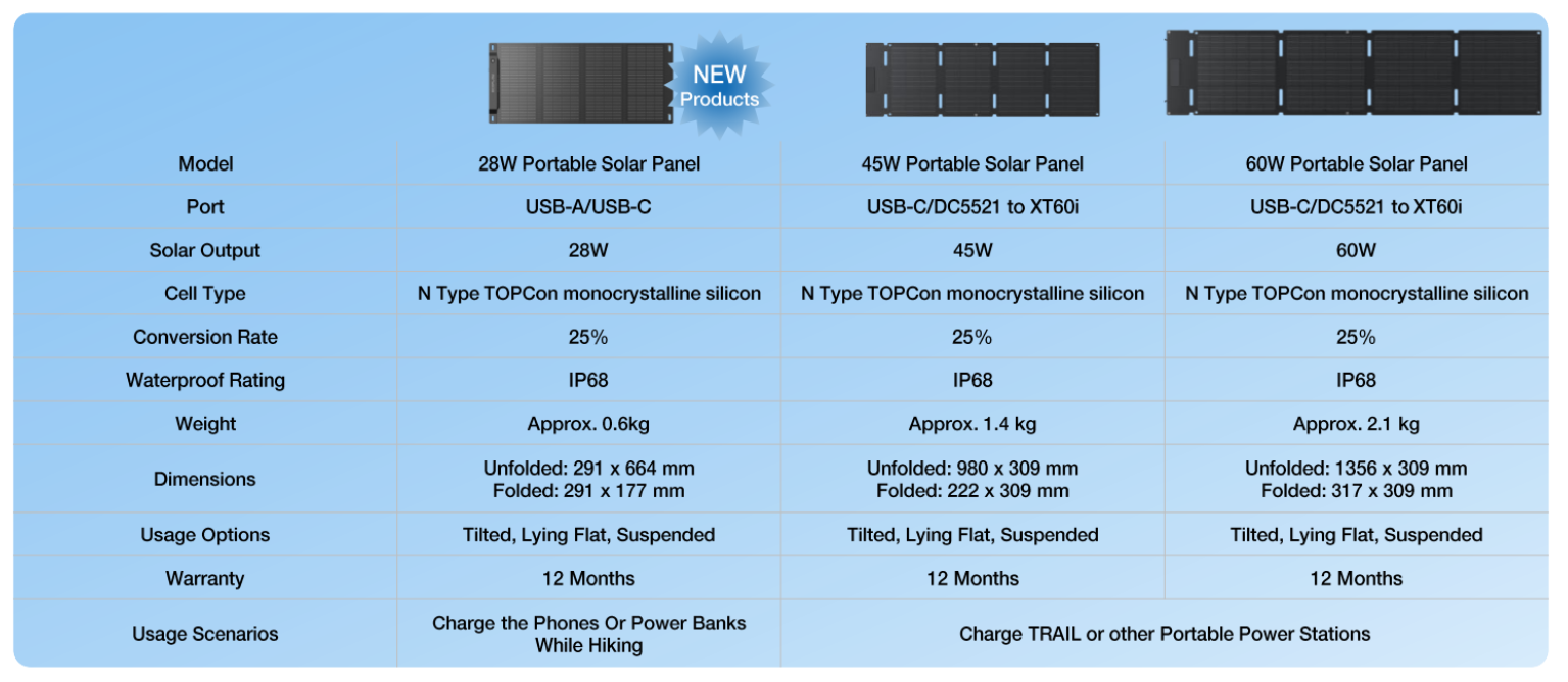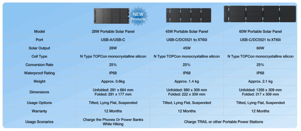 Les séries TRAIL 300 et Plus 300 vous permettront aussi d’utiliser vos panneaux solaires pour charger. N’hésitez pas à jeter un œil aux mini panneaux portables: