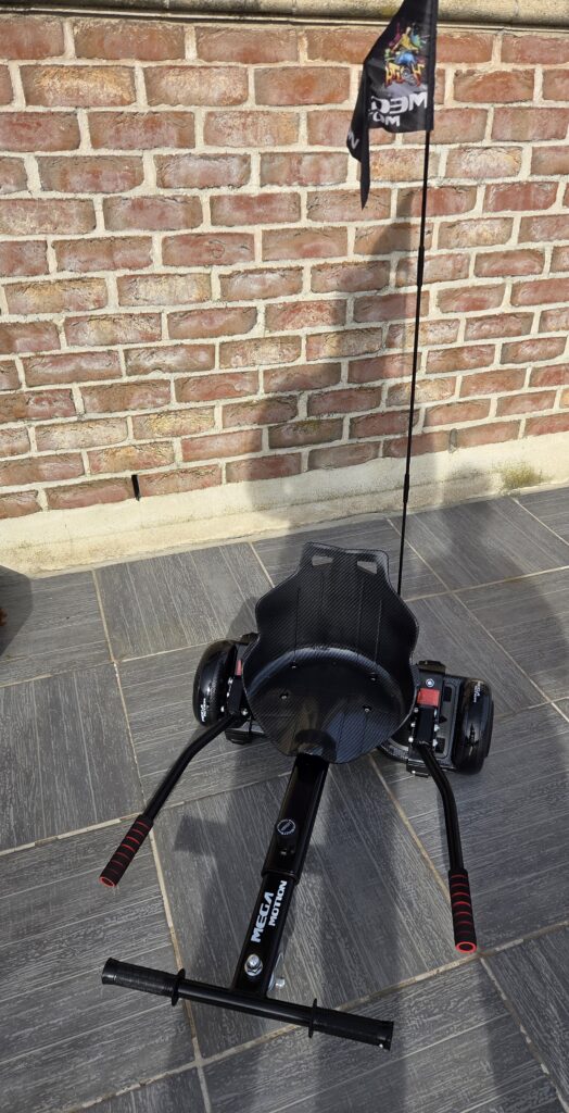 Nous avons eu l’occasion d’essayer le MEGA MOTION A03 Go Kart avec un jeune enfant, et l’expérience a été un vrai succès. La transformation de l’hoverboard en kart est simple et intuitive, et la stabilité du châssis rassure immédiatement. L’enfant se sent vite en confiance et prend plaisir à manœuvrer, que ce soit en ligne droite ou en virage.