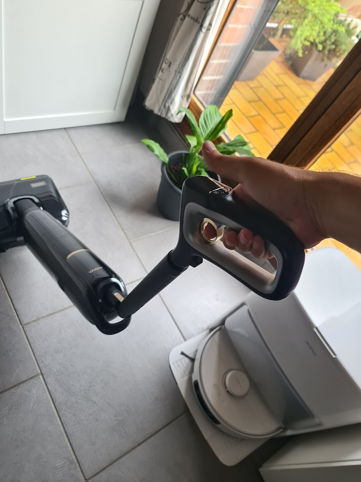 L’assemblage est d’une simplicité enfantine. Il suffit d’emboîter la poignée, de clipser les réservoirs, et l’appareil est prêt à être utilisé. Pas de manuel d’instruction compliqué à déchiffrer, l’intuition prime. La qualité des matériaux est immédiatement perceptible : le plastique est robuste et les finitions sont impeccables. Avec un poids de seulement 5,7 kg, il est remarquablement léger, ce qui est essentiel pour une utilisation prolongée sans fatigue. Le design, épuré et moderne, s’intègre parfaitement dans n’importe quel intérieur. On est loin des appareils massifs et encombrants d’il y a quelques années.