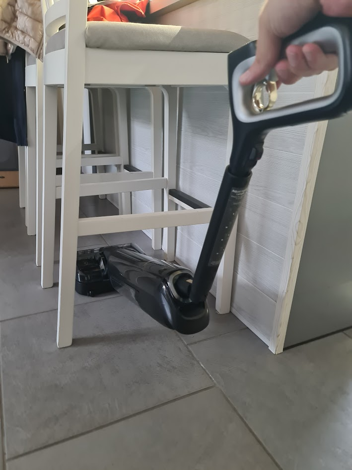 C’est sans doute la caractéristique la plus impressionnante du M50 Ultra. Le balai est doté d’un bras articulé Flex-Master qui lui permet de se plier pour atteindre une hauteur minimale de 14 cm. Vous pouvez ainsi nettoyer sans effort sous les lits, les canapés, et les meubles bas, des zones souvent inaccessibles avec les aspirateurs traditionnels. Plus besoin de se tordre le dos ou de déplacer des meubles lourds. Cette innovation, la première du genre sur le marché des balais laveurs, est un avantage non négligeable pour certaines personnes pour le nettoyage quotidien.