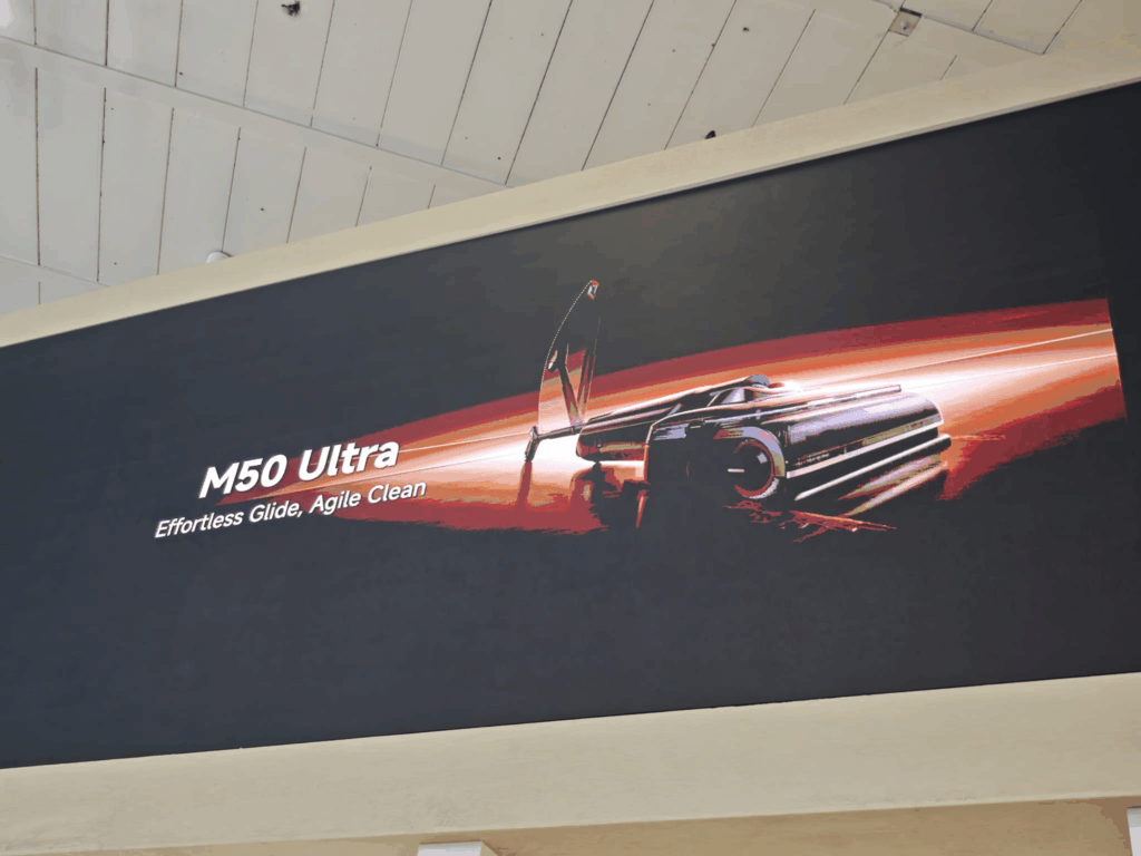 Utiliser le M50 Ultra est un pur plaisir. Son système Smart Gliding Power lui confère un effet d’autopropulsion. C’est comme s’il roulait tout seul sur le sol, ne demandant qu’une légère poussée pour le guider. La tête pivotante à 90 degrés et les roues motrices vous permettent de le manier avec une seule main, même dans les espaces restreints. C’est une expérience de nettoyage sans effort, presque agréable.