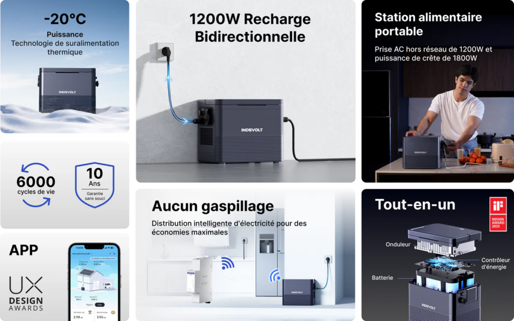 - Durabilité : Batterie LiFePO₄ (6000 cycles)