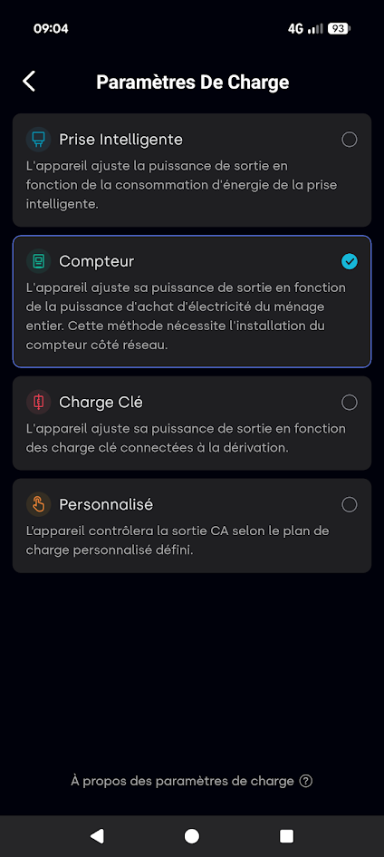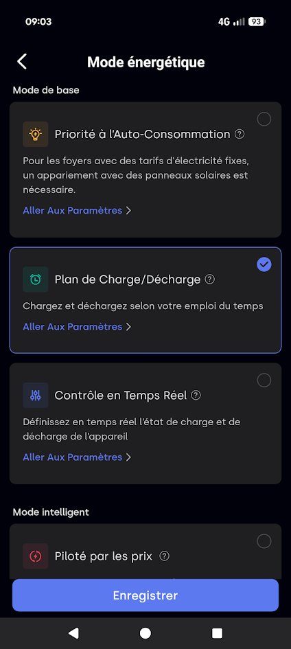 - Modes de Fonctionnement : Vous avez le choix entre l’Autoconsommation (avec compteur intelligent), la définition de Plans de Charge/Décharge horaires si vous n’avez pas de compteur, ou le mode Batterie Nomade.
