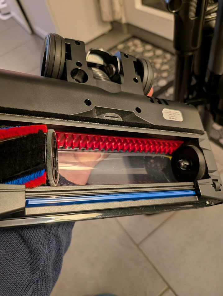 La brosse est plus qu’un simple rouleau. Elle combine DustSense (détection de poussière), EdgeSense (augmentation de la puissance si proche d’un mur) et la détection du type de sol. Le nettoyage des bords est particulièrement réussi grâce à la conception de la tête.