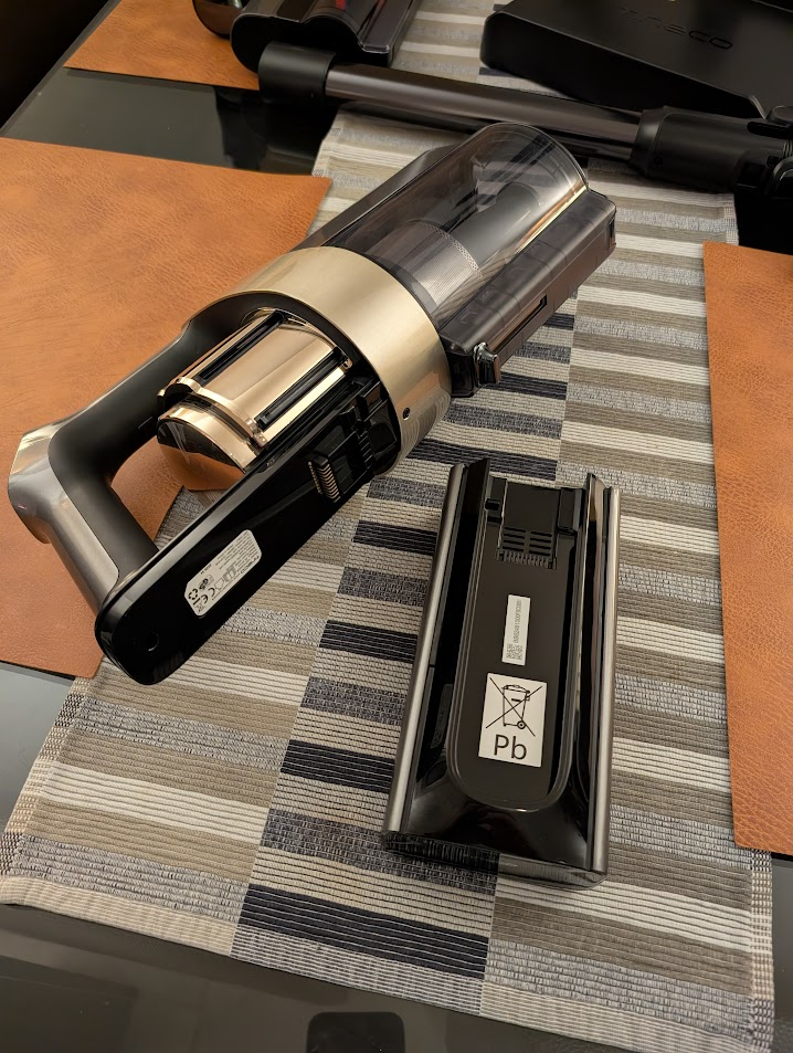 Mon ressenti : En mode Auto (qui est le mode que l’on utilise 90% du temps grâce à DustSense), on tourne plutôt autour de 30 à 40 minutes en usage mixte car le capteur augmente souvent la puissance. C’est suffisant pour un appartement de 80-100 m², mais si vous avez 200 m² à faire d’une traite, il faudra faire une pause recharge, passer à la caisse pour une seconde batterie. D’ailleurs, un bon point pour ce A90S qui adopte une batterie amovible: cela permettra dans le futur de renouveler la batterie plutôt que l’appareil en entier.