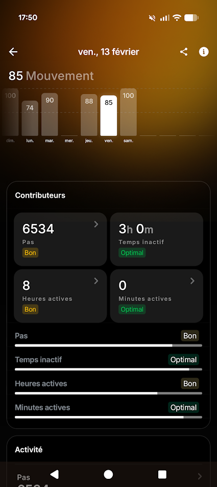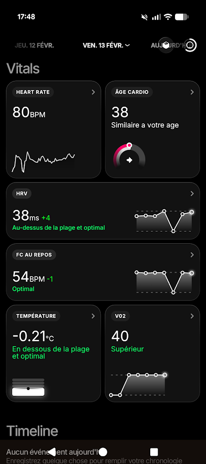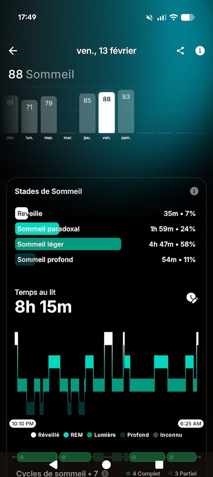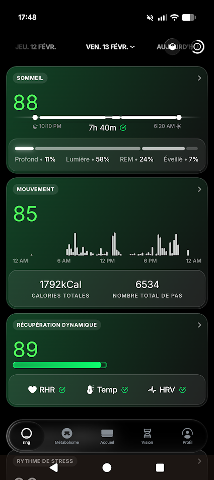 Initialement, j’avais adopté cette bague pour combler le manque de données nocturnes. Mais au fil des semaines, la précision et la pertinence des scores ont fini par me convaincre : elle est devenue mon capteur numéro 1 au quotidien, détrônant mes autres trackers pour le suivi de ma forme générale.