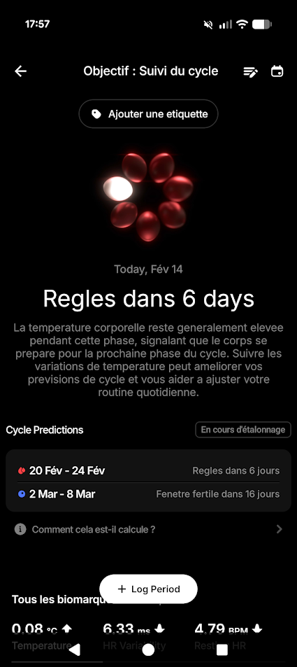 Ultrahuman propose des mini-apps dans l’appli appelées Powerplugs. Vous pouvez activer celle sur la « Caffeine Window » (pour savoir quand prendre votre dernier café afin de ne pas ruiner votre sommeil), celle sur le rythme circadien ou encore celle du cycle menstruel. C’est brillant et très utile au quotidien !