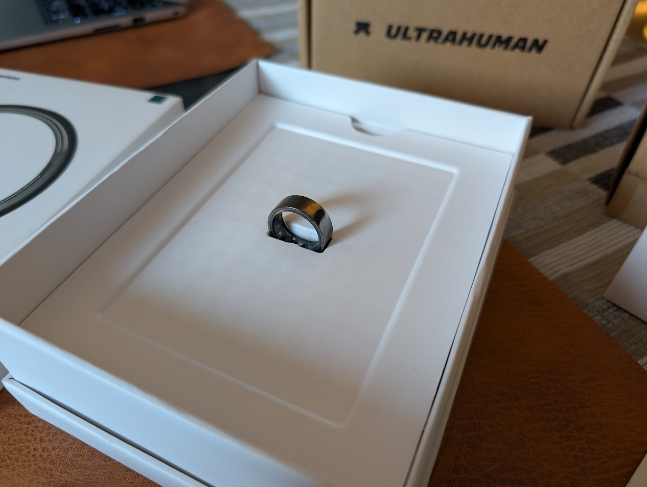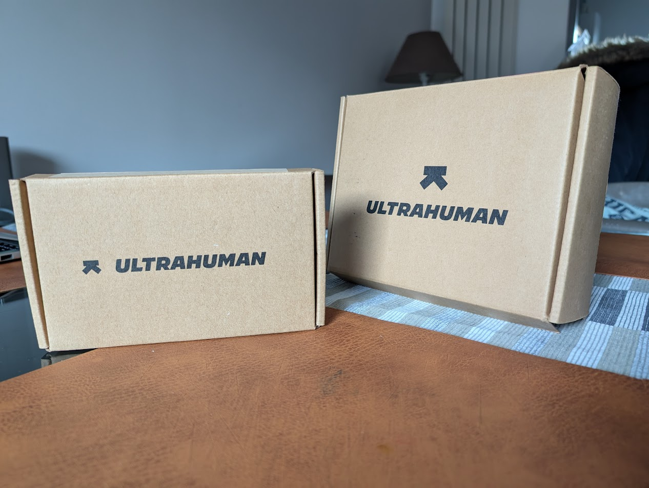 Ultrahuman vous envoie une boîte avec des répliques en plastique de toutes les tailles. Mon conseil ? Portez la bague de test au moins 24h, car vos doigts gonflent avec la chaleur ou l’effort. Dans le sizing kit, vous trouverez également un aperçu des coloris, de quoi se sentir rassuré avant de faire son choix final ! Une fois votre taille validée sur leur site, la « vraie » bague arrive dans un emballage ultra-soigné. On sent tout de suite qu’on est sur un produit premium.